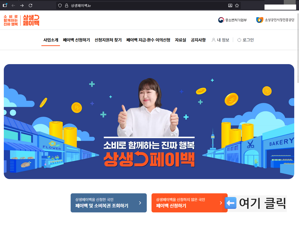 1️⃣ 상생페이 접속 (PC, 안드로이드 가능 / 아이폰은 팝업 차단 해제 해야합니다)